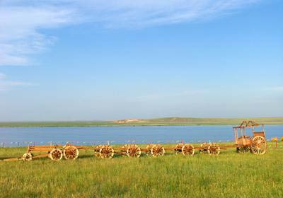 從內蒙古海拉爾乘車沿301國道北行,在茫無邊際的草原里,迎著車窗外撲鼻的花香和悅耳的鳥鳴,視野里滿目碧綠,愈走愈會感到綠的色彩愈重,遠山綠得滴翠。車過陳巴爾虎旗旗府巴彥庫仁鎮10公里,一個明鏡般的湖泊便闖進了你的眼簾,這就是呼和諾爾湖。
