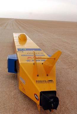2004年6月13日,突尼斯:Colin Fallows計劃在本周末駕駛他的子彈頭電車在突尼斯沙漠中創造新的世界記錄