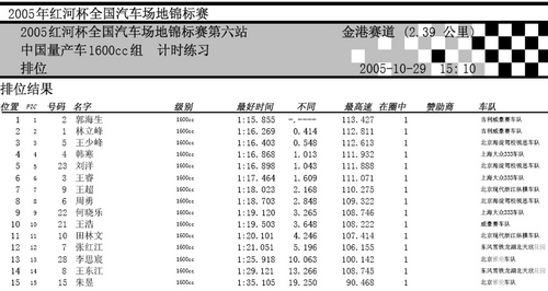 2005年全國汽車場地錦標賽第六站1600CC組計時練習成績 |