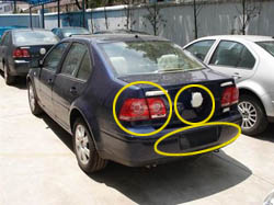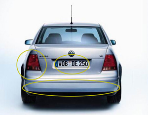 新老寶來的尾部變化較大,除尾燈的變化外,新舊寶來的后掀背和牌照的位置都有明顯變化。