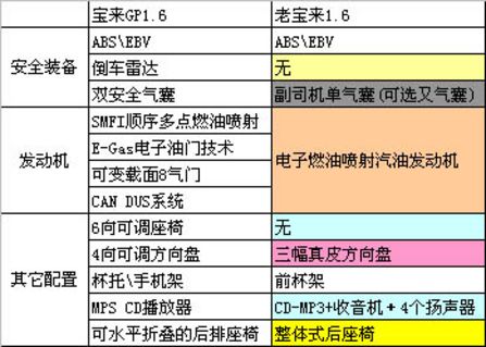 根據對比,新寶來的最大變化在新動力系統的運用.而且新寶來在安全方面增加了配置,諸如雙安全氣囊和倒車雷達等裝置.可調方向盤\可調座椅\播放器等配置也有所提升,并向人性化方向轉變。