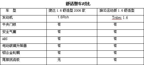 舒適型在一直是兩個品牌銷售的主力軍,在這個檔次上產品的競爭是最激烈的。旗云運動版舒適型售價69800,捷達是119800,二者配置上基本相同,旗云卻已經和捷達拉開5萬元的距離。