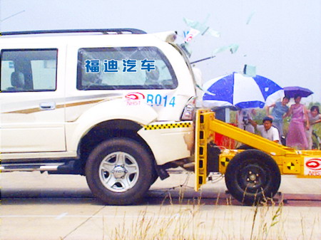 2006年7月1日,《汽車(chē)側(cè)面碰撞的乘員保護(hù)》、《乘用車(chē)后碰撞燃油系統(tǒng)安全要求》強(qiáng)制性國(guó)家標(biāo)準(zhǔn)在我國(guó)正式實(shí)施。就在標(biāo)準(zhǔn)剛剛實(shí)施6天后,廣東福迪汽車(chē)在國(guó)家汽車(chē)質(zhì)量監(jiān)督檢驗(yàn)中心(襄樊)成功通過(guò)了"雙碰"試驗(yàn),成為我國(guó)首批通過(guò)該測(cè)試的國(guó)產(chǎn)SUV企業(yè)。