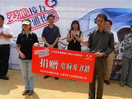 8月19號,由上汽雙龍剛剛上市的頂級SUV-雷斯特II組成的車隊滿載著首批上汽車業銷售公司下屬各公司及個人捐贈的電腦及書籍,從上海出發,駛向云南昆明偏遠的希望小學。