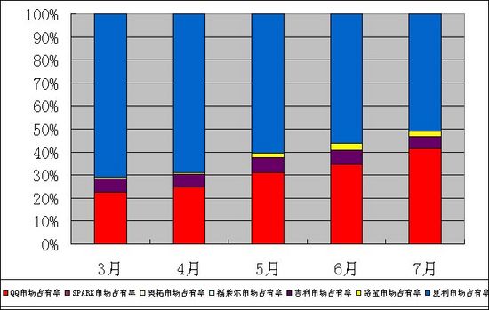 數(shù)據(jù)表明,奇瑞QQ3和夏利占據(jù)了北京小排量車市場的主要份額。有專家分析稱,在以北京為首的幾大重點城市作出限制不符合歐III排放標準的小排量車銷售的規(guī)定后,一些未達標的小排量車如SPARK等都暫停了在這些市場的銷售,而奧拓更是因為無法繼續(xù)大量投入科研力量開發(fā)新產(chǎn)品無奈被迫退出了北京市場。"環(huán)保"達標成為夏利、QQ3兩款小車壟斷京城微轎市場的主要原因之一。