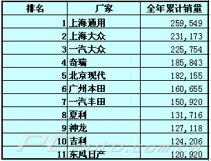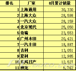 值得注意的是,奇瑞8月份銷量超過一起豐田,進入了銷量排行前五名。一汽豐田則由上月第五名滑落至第7名。廣州本田、一汽豐田、吉利、夏利和東風日產分局銷量排行的第6至第10位。