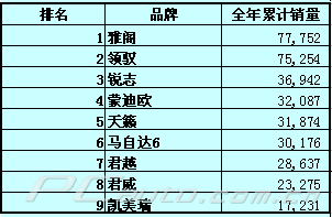 就車型銷量來看,雅閣、領馭、凱美瑞組成了中高級車輛的前三甲。從全部車型來看,捷達、凱越、伊蘭特、夏利、QQ分別居前五名,這些車型也是8月份唯一銷量過萬的車型。