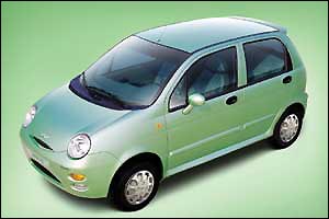 奇瑞QQ是國內第一款為年輕人打造的轎車,定位于“年輕人的第一輛車”,其設計原則就是“快樂”。看QQ的第一眼,迎面而來的就是一雙圓圓的含笑眼睛,前格柵就是一張含笑的小嘴巴,再配以小巧玲瓏的標志,一張快樂的笑臉迎面而來,一種快樂的感覺撲面而至。前保險杠以大包圍方式設計,前霧燈、轉向燈上下分布在兩側,與設計成半圓的擾流板和前標共同構成一種小小的憨厚表情,方圓相濟的防撞條、后視鏡、門把手一切都顯得個性十足,動感快樂。QQ將裝備排量為0.8L-1.1L多款發動機,分為基本型和舒適型兩種,天窗、中控門鎖、真皮座椅、六碟CD等各種配置應有盡有,更有防盜器、行李架等個性化配置。首批上市的將是手動擋的,年內,自動擋的QQ將問世。