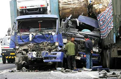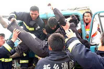 “如果間距有40米,他就能剎住車了!”眼看著同伴的鮮血,一名司機痛心地說。昨天早上約7時許,京珠高速公路河南新鄉段因大霧短時間內發生十多起汽車追尾事故,造成該段京珠高速公路向南行駛方向一度封閉。據了解,事故相撞車輛在百輛左右,數百輛車滯留了10多個小時,綿延數十公里。事故原因是由于當時公路上時強時弱的團霧所致。有關部門雖全力搶救,仍有4人被奪去生命。