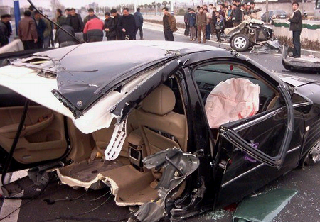這張不是雅閣,而是上海大眾帕薩特,幾乎是車身縱向斷裂。請繼續(xù)看:
