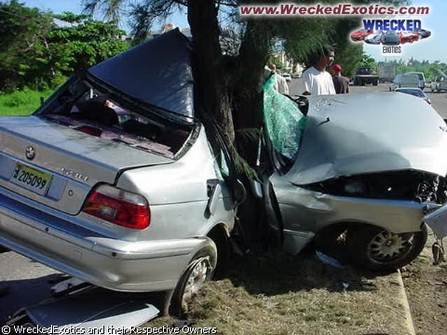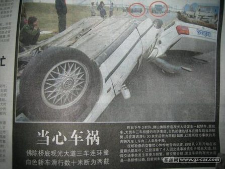 這輛則是國外原裝的寶馬,也幾乎斷為兩截。