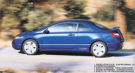 第八代本田Civic Si采用全新底盤及懸架系統,搭載2.0升197馬力的四缸可變氣門正時發動機,在6000—8000轉/分的高轉區域非常活躍。與160馬力的老款Si(在英國生產)相比,新款的剛性也有了不少提高。美國版Car and Driver于2002年曾做過一次3車對比,上一代Si曾戰勝過當時的GTI,但不敵福特SVT Focus。不過時過境遷,如今的GTI也已進化到第五代。事實上,大眾高爾夫GTI從第二代開始,它的動力就從未讓人失望(除了那款115馬力的2.0升發動機)。如今展示在人們面前的第五代GTI擁有出色的底盤系統和2.0升渦輪增壓直噴發動機,這臺發動機我們已介紹過多次,它的實力足以與本田的高轉速抗衡。此次這對宿敵再次狹路相逢,比拼的結果我們都很期待。