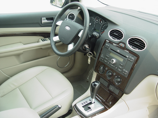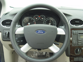 福克斯的內飾設計一切都以實用為出發點,所以并不花哨。比如中控臺上的按鈕,常用的都以大的旋鈕來控制,其他一些小型的音響控制按鈕也盡量通過擴大彼此之間的間隔來方便駕乘者的操控。而飛航式的駕駛艙設計,也使得“目不離路”的概念得到了詮釋。比如,在轉向盤的左側背部,設有音響控制系統,而轉向燈控制桿的頂端則被用來控制儀表盤上的一些行車數據,包括行駛總里程、單次行駛里程以及瞬時油耗等。這些設計都是為了防止駕駛員低頭去尋找各個相應的控制按鈕,從而影響駕駛安全。當然,實用歸實用,美觀還是要保證的。所以福克斯在轉向盤、儀表板和空調出風口的設計上下了很多工夫,鍍鉻加不同大小和形狀的圓形搭配,活潑的視覺效果體現了這是一款適合家用的私人轎車。