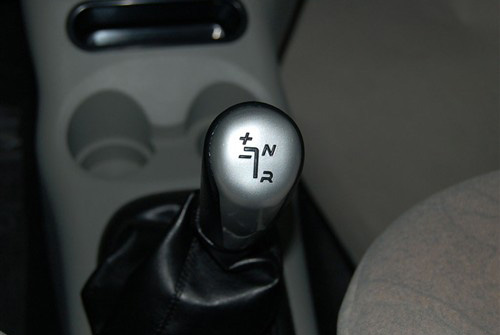 進(jìn)入QQ的車內(nèi),內(nèi)飾的變化并不大,依然保持原來淺色調(diào),溫馨而又有親情味。不過最吸引記者的,就是那個(gè)與眾不同的換擋桿了。以往所接觸過的手/自動(dòng)一體變速器,換擋桿一般都有“P” 、“R” 、“N” 、“D” 甚至“2” 、“1”等幾個(gè)自動(dòng)變速器常見擋位,以及“+”、“-”等手動(dòng)選擇擋位。然而QQ-EZdrive的AMT手/自動(dòng)一體變速器的換擋桿上,只有“D”、“R”、“+”和“-” 4個(gè)擋位指示。離合器踏板也已經(jīng)取消,而儀表板車速表下方的液晶顯示屏上可以顯示當(dāng)前擋位。