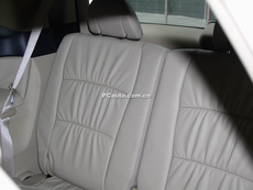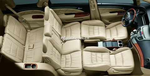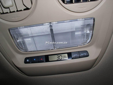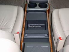 米色真皮用料和良好的做工的座位給我們的駕乘帶來了好的心情,中央的桌臺在不用時可以折疊,帶滑動的門可以放3CD,空調采用三區域獨立控制自動雙空調,車頂采用了高效隔熱材料,有效的提高的制冷效果。