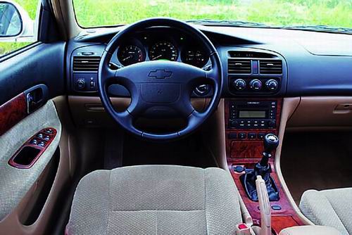 景程外部造型簡潔,有著歐化風(fēng)格,鷹眼式頭燈堪稱點睛之作。它秉承了著名意大利設(shè)計師喬治亞羅在眾多經(jīng)典車型上的設(shè)計風(fēng)格,和諧穩(wěn)重而不失時尚。前臉簡潔的鍍鉻橫條格柵配上雪佛蘭“金領(lǐng)結(jié)”顯出了幾分風(fēng)流。晶鉆一體的鷹眼式前大燈則是它最吸引人的地方,相比之下車側(cè)窗的造型就顯得過于柔順了。與有一定吸引力的外形相比,景程的內(nèi)飾風(fēng)格明顯趨于保守,采用了常見的雙色搭配,手動檔車型更顯示出了它的平和和簡潔。中控臺是韓式轎車中常見的實用風(fēng)格,各種按鍵和旋鈕都很方便實用。真皮四幅式方向盤手感不錯,座椅的舒適性也不錯,司機可以調(diào)節(jié)座椅高度。手動檔車型的配置自然要低些,少了自動雨刷、自動空調(diào)、電動折疊后視鏡等配置。