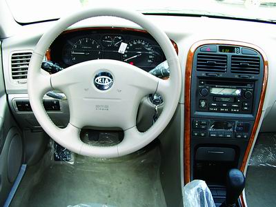 坐進車廂內,第一個感覺就是似曾相識,除了方向盤正中的“KIA”標志之外,空調出風口、儀表盤、方向盤等部件的樣式與索納塔一模一樣,估計如果今后遠艦的內裝出了問題,車主在北京現代4S店同樣能夠搞定。