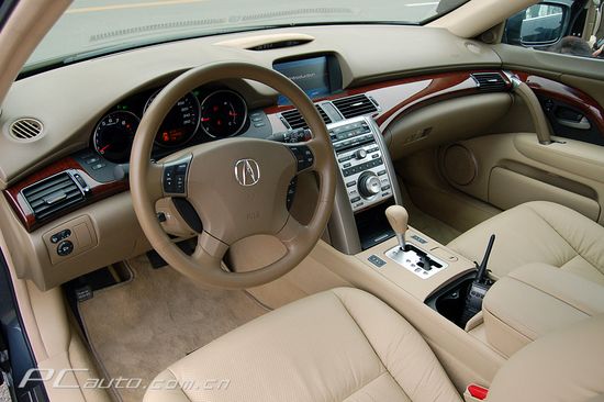 在內飾方面,Acura作為本田的高端品牌,一如既往的繼承了日系高端車型豪華、精致的內飾風格,米色的真皮座椅及內飾配合木紋裝飾體現了高端車型應有的奢華。四幅真皮方向盤,帶定速巡航和音響系統控制,并在兩邊控制按鈕上方各有一個類似F1技術的換檔撥片,當變速箱置與手動模式時,可以通過左右各一個撥片實現加減檔,換檔完全在彈指之間實現。從內飾來看,RL體現更多的還是接近一款豪華車,而不是運動型轎車。
