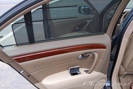 剛剛進入駕駛室就被震撼了一把,RL原配的Acura/BOSE 10音響環繞系統,及6CD DVD音響和DTS換碟機提供了絕佳的音響效果。這套由Acura和BOSE共同開發的音響系統包括一個9英寸低音擴展器,10喇叭總功率達260W,它為車內每一個座位提供了完美的環繞音響效果。當時正在播放的一張DVD測試碟,完美的模擬了各種天氣效果音效,風聲雨聲雷聲,如同身臨其境,讓人難忘。