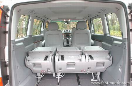 4.9米的長度,特別是1.9米的寬度,使得Viano絕對應該屬于大載重車的類別。在拆除后排座椅后,它的載物空間更是能達到一個驚人的程度。這樣的水平已經遠遠高于一般的單廂車,如別克GL8或雷諾Espace,其實它們的載物空間已經算得上很富足了。Viano在這方面完全算得上沒有敵手。作為一個絕對可以用來搬家的車輛,它在寬度上的空間感會使人覺得是在乘坐巴士。它在歐洲的車型被布置成野營車的外形,同時還提供了微型廚房和床,更給人帶來充分的空間感受。Viano超出普通規格的車廂空間,所以也完全可以用來召開公司董事會的會議。此外,寬大的玻璃面積和前后兩個電動頂窗更是令光線充足,更大程度地加深了空間感覺。它那半開的后側窗顯得尤其的長,更是使光線感和空間感進一步加強。