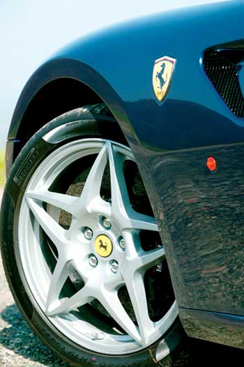 但從廠家公布的賽道成績上不難看出599的狂野:599跑完一圈需要26.5秒,這個成績要比F430快0.5秒,比F40快了4.5秒,而作為法拉利最強(qiáng)悍的Enzo也僅比599快1.5秒。這是因為599的發(fā)動機(jī)來自Enzo,兩者共享了相同的缸體以及活塞,但是599的連桿裝置采用了鋼而非鈦合金。599的輸出功率雖然低于Enzo, 不過差距很小,Enzo在7 800r/min時發(fā)出478kW功率,599在7 600r/min時提供456kW的功率,但是數(shù)據(jù)上的差異在駕駛時很難察覺。