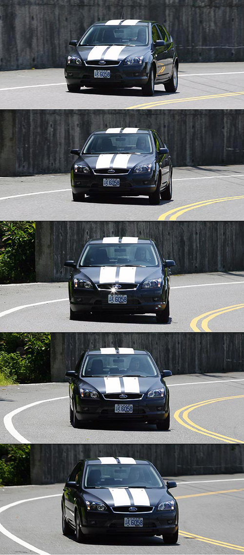 在進彎的時候,可以放心把車速稍微拉高超過平常的水平,Focus TDCi極佳的車身剛性以及懸吊設定,讓車輛動態反應靈活卻緩慢,那是一種彷佛一切都能操之在我的感覺。遵循著之前駕駛Focus 2.0五門以及Focus ST的記憶,我延后近彎剎車點,讓車身以偏高的速度沖進彎道里。這時候,從方向盤、從座椅、從腳底傳來的震動與感覺,清楚地告訴我現在車輛的極限何在。即使因為車速過高產生轉向不足的傾向,駕駛者也不會感受到驚慌,只需要加深剎車踩踏的深度,車尾就會報以相對幅度的滑動,修正路線順利過彎。