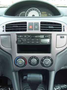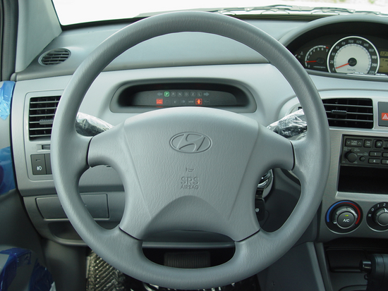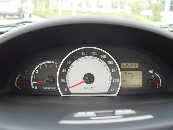 在開車試駕之前,習慣性先審視Matrix中控臺及儀表組的組裝。中控臺不論是組件之間接縫大小的控組,組件裝配的施工品質,都有相當良好的表現,即便是類鈦金屬色澤的塑膠飾板,其表面處理的細致、色澤的控制等,表現相當良好。在儀表組的設計上,Matrix也采用中置的設計,讓主要的轉速表及時速表、行車電腦、時鐘等,都置于中控臺中央的上方,設計也十分細致,質感表現極佳。而Matrix也沒有盲目的追從中置儀表組設計,在方向盤后方的空間上,Hyundai的工程師仍細心地安排著檔位顯示及各種車狀感知器的警示燈組,讓駕駛人員都能很方便地掌握車輛的狀況。這種雙儀表/燈號組的設計,良好的閱讀介面。