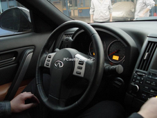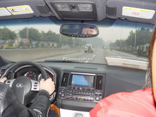 無限FX45采用的是電子感應車鎖,也就是只要主人帶著車鑰匙,走到車門旁直接就可以開門了,沒有車鎖感應芯片,就算你上了車你也不能將發動機發動車身無法開走。點火“哄”的一聲FX45叫了一下,咦?發現沒聲了,原來FX45在怠速的情況下十分的安靜,車身沒有絲毫的震動,方向盤會在你發動的那一刻自動對其進行最佳的調整。駕駛的空間很大,手腳怎樣都沒有局促感,踩住剎車我們將檔桿掛入“D”檔,同志們:注意了!車主再三提醒如果沒有開過大排量車的朋友千萬不要像平常一樣踩油門,因為重一點它就會沖出去,小編的第一下就嚇了一條,這哪里是車?恐怕是怪物吧!