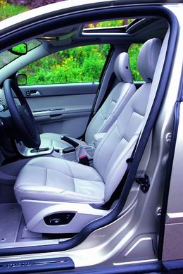 差不多就是 S80和S60縮小版的S40同樣擁有緊湊的車身輪廓和幾十年不變的前臉,側面寬闊飽滿的肩部與收縮的上部構成一個家族化的階梯,除了對車內空間的貢獻,還有助提高安全性;沃爾沃的車身設計總會和安全掛鉤,車頭部的圓滑也是為了減輕與行人發生碰撞是造成的傷害。關于安全的問題我們后面還要專門說到。