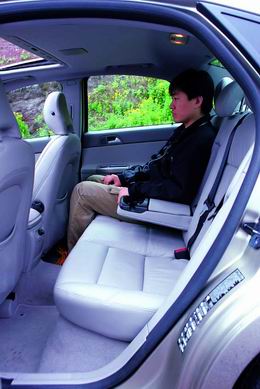 | 前排座椅為電動調節并帶加熱功能,雖然車身尺寸較小,軸距只有2640mm。 | 后座腿部空間不甚寬裕,但作為家庭車也足夠用了 |