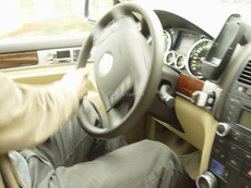 我們首先將車身在一前一后的動作中調(diào)高,踩住剎車,掛入“D”檔,將車輛調(diào)到“sport”模式,猛一加油,由于過重的車身(2412Kg),并沒有給我們帶來期待的推背感,不過發(fā)動機線性的源源不斷傳來動力,耐心一下,不知不覺中車速有了一個較大的提高,原來已經(jīng)到了120公里時速了,中部加速還是蠻有力的,車廂內(nèi)除了低沉的排氣聲、優(yōu)雅的音樂,你的腦子不會再注意到些什么。見到前面的減速帶我們絲毫沒有剎車的意思,加大油門“咯噔”兩聲在加高的車身先進的空氣懸掛系統(tǒng)和300毫米的離地間隙支持下,完美的沖過了第一道“難關(guān)”,方向盤沒有任何的竄動,之后的行駛中我們將車身降到最低,幾秒鐘后你即刻可以感覺輪胎強有力的抓地性,車身更加平穩(wěn),面對下一個彎位減速帶,我們不敢大意,早早的來了一個剎車,在六活塞通風(fēng)制動系統(tǒng)的固定制動鉗和EBC(發(fā)動機制動)的幫助下,如此之大慣性的車身即刻有了點頭感,慢慢的,慢慢的通過。