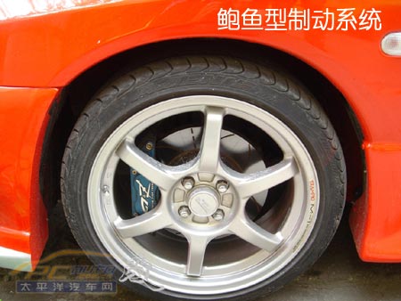 發動機馬力盡管增強了一些,但制動系統改裝增強制動效能,使行車更加安全。對于盤式制動器,改裝起來要更為簡單些。市面上有很多制動系統改裝套件,如剎車助力器就可以增強制動管路的油壓,輔以鋼質制動管路,使制動更加靈敏和有力。在這種力度增強的前提下,加大制動盤直徑、采用劃線通風盤,可以加強制動盤散熱效果,提高制動效能。加裝了劃線通風盤、剎車助力器后,還不算完善,這臺菱帥還改裝了俗稱鮑魚的制動卡鉗,并輔以高性能制動片,以保證制動系統各部件的效能均衡。