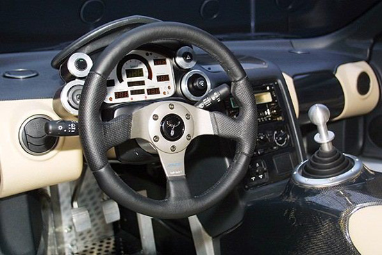 這是一輛日本專業(yè)改車公司打造的純手工制作的跑車,4輪驅(qū)動(dòng),發(fā)動(dòng)機(jī)中置,引擎采用Nissan Skyline GTR34所使用的RB26 2.6升雙渦輪引擎,車重1100KG,馬力900匹,0~100僅要3.3秒,最高時(shí)速380公里。