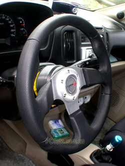 | 由于原廠方向盤直徑過大 車主換裝上手感上佳的賽車方向盤 | 對操控有絕對幫助的桶型座椅 |