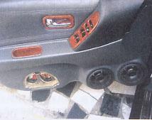 前面安排了這么多的器材,放置在行李箱中,會不會雜亂無章呢?答案是否定的。行李箱的工藝改裝也別具匠心,重低音制作箱體安裝在后座背部,左右側利用剩余空間安裝電容與汽車維修工具等,功放安裝在行李箱底部,可整體上移,以便備胎及雜物能輕松取存。
