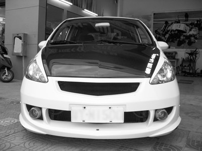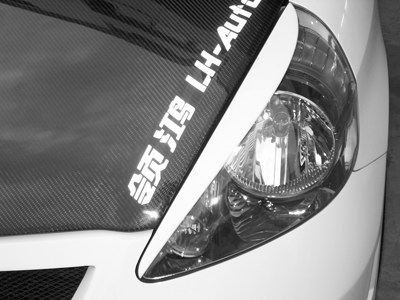 前臉最引人矚目的就是換了前炭纖維頭蓋,車主表示,前炭纖維頭蓋比一般頭蓋要輕一半,它能減輕車身重量,有利提升起步速度。雖然車主主要是為減輕重量出發(fā),但安裝后,前臉的效果就與原車大不一樣,黑色的頭蓋,配合白色車身,顏色搭配相當(dāng)?幔偌由锨懊婊㈩^虎腦的大燈,用車主的話說(shuō),不經(jīng)意間就冒出了個(gè)酷酷的“壞小子”出來(lái)。