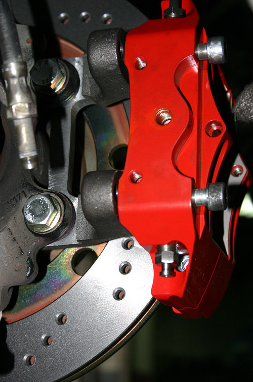 一般人在改裝多活塞卡鉗時都會感到疑惑:到底是否有必要將總泵加大呢?筆者個人認(rèn)為應(yīng)該要加大,因為更換多活塞卡鉗的目的,就是希望能透過增加的活塞面積來提升制動力,然而因活塞的總面積已大幅提高,在相同的單位量移動時,所要充填的油量亦需增加若干,假如總泵活塞面積沒有增大的話,可想而知踏板行程會比原本更長,想想看要踩到很深才有煞車,操作上勢必會非常模糊,并且容易發(fā)生鎖死的現(xiàn)象,因此才需要透過加大總泵,使其能在較短的時間內(nèi)送出同樣體積的煞車油,來取得更短的踏板行程,這樣一來就會有直接且線性的煞車感,當(dāng)然腳踏的力量也需要增大。一般加大總泵多半是采流用的方式,好比喜美改雅哥、高爾夫改Passat的大型總泵。