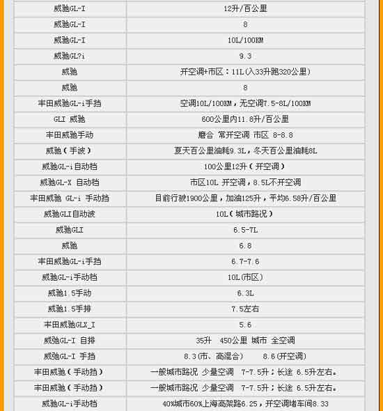 查看本站點的威馳車油耗調查,車主提供的數據琳瑯滿目,各自都不同。不算一些偏差極大的21L/100km,比較容易接受的是一些車主打出的油耗達到12.5L/100km,以及一些車主打出的6.5L/100km。為什么會有6L/100km的差距呢?小編認為,這涉及到手動/自動檔的差別、駕駛習慣、豪華附件如空調的開動、路況等方面的原因。