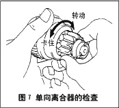 如圖7所示,先順時針轉動小齒輪,應靈活、無卡滯。然后逆時針轉動小齒輪,應立即卡住。如達不到上述要求,應更換單向離合器總成。