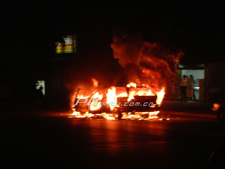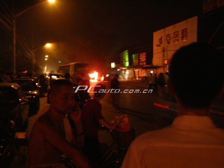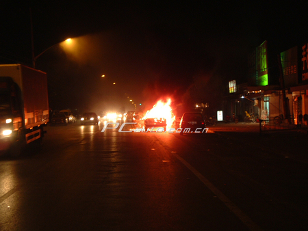 太平洋汽車(chē)網(wǎng)(PCauto)接網(wǎng)友黃先生報(bào)料稱(chēng):8月30日晚,他在經(jīng)過(guò)北京朝陽(yáng)區(qū)東葦路管莊路口時(shí),遇到一輛桑塔納旅行版突然發(fā)生自燃,火苗升起2米多高,并不時(shí)發(fā)出輕微爆炸聲,觸目驚心。事故現(xiàn)場(chǎng),吸引了很多路人,不少人都冒險(xiǎn)想沖上去圍觀(guān),但火勢(shì)過(guò)猛,難以靠近。筆者在現(xiàn)場(chǎng)冒險(xiǎn)拍到了整個(gè)事件的全過(guò)程。隨后趕到的交警封路,直到消防人員到場(chǎng),才撲滅了大火。可憐的桑塔納只剩下一副外殼……