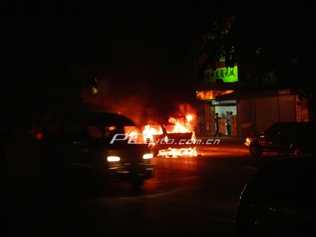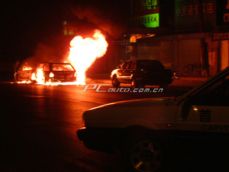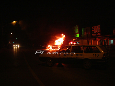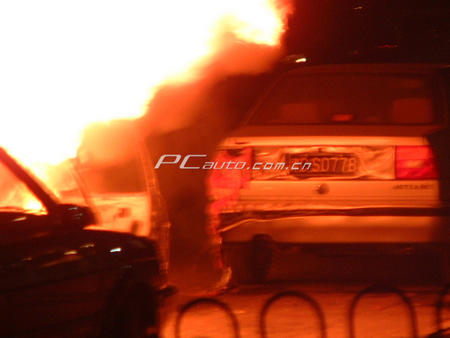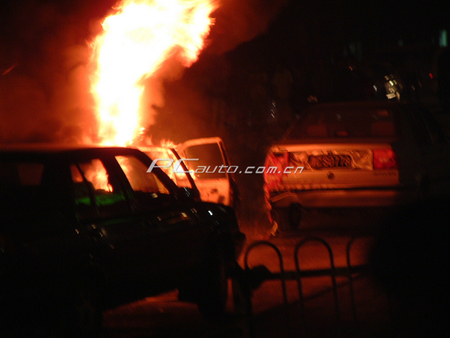 火焰升起2米高 北京網(wǎng)友實(shí)拍桑塔納自燃