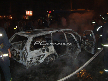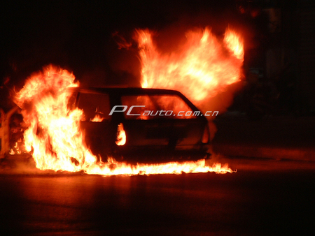 火焰升起2米高 北京網友實拍桑塔納自燃