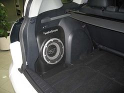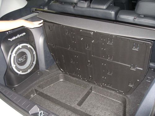 原廠車就配有的RockFord Fosgate 650W的高級影響系統(tǒng)。位于行李廂尾部的低音炮沒有絲毫的占用空間,而且位置的擺放非常的合理。行李廂的的空間在第二排座椅沒翻倒的情況下有774升的空間,翻倒后就會有多達(dá)1691升的載物空間。