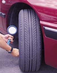 | 在進行Energy MXV8和同級對手的測試比較前,先確認二車的胎壓是否一致,以維持比較結果的公正性 | 值得一提的是,Energy MXV8輪胎踏面﹙Tread﹚展現出一種與眾不同的〝V型〞特殊胎紋,根據米其林原廠的資料顯示,這樣的設計可以減少胎塊變形、擠壓、和彈起的噪音,同時以較厚的底膠加強吸震,而且利用踏面中央四條縱向的巨大排水溝槽,并且在中央主踏面之處作〝V型〞胎紋互相反向的設計,原廠的技術人員強調,這種胎紋互相反向的設計,可以非常有效的降低輪胎軋地噪音,讓噪音的頻率落在人耳聽力范圍之外,特別適合強調乘坐舒適性與靜肅性的車款使用。此外,新橡膠配方所創造出來的優異彈性,也使得行路舒適性較過去大幅提升