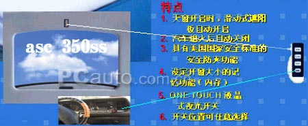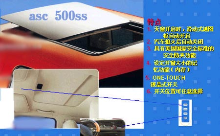 目前在國內(nèi)銷售的曉星asc產(chǎn)品全部為電動型號:800FFS、500SS、400SS、350SS、350Q/F。消費(fèi)者購買安裝美國asc天窗產(chǎn)品時請注意查看附帶的一本質(zhì)量保證書操作保養(yǎng)指南手冊,手冊上有曉星asc中國本部代表蓋章印鑒。并請核對天窗的編號是否正確,以保障售后服務(wù)。