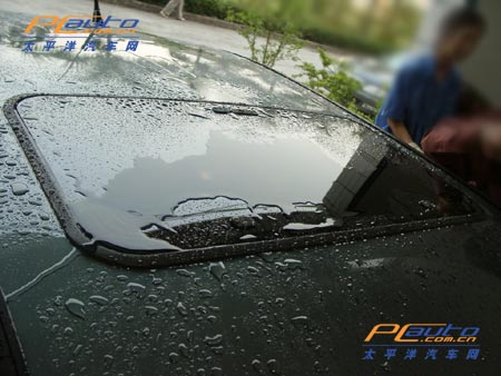 最后的工序,當然是把車開到灑水位進行密封性的測試。小編做到車內,與車主一起嘗嘗開天窗的新鮮感。的確不錯,但該級別的天窗沒有內遮陽板,陽光劇烈的時候不能遮擋。經過模擬淋雨試驗后,車主認為安裝沒有問題,本次安裝即告完成。此時,時間剛好是下午5點10分。離開始安裝差不多兩個鐘頭。