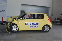 在第一天的正面100%重疊剛性壁障碰撞試驗中,雨燕的翼子板曾與車門之間出現了輕微阻礙現象。在對車體強度有著更高要求的正面40%重疊可變性壁障碰撞試驗下,雨燕又會是一種什么樣的情況呢?畢竟之前有些車型曾出現過車門開啟費力的情況。好在雨燕這次并沒有讓我們失望,碰撞后四車門開閉正常。看來在歐洲經受過64Km/h時速下撞擊考驗的雨燕,還是能夠應付C-NCAP的測試的。以下我們就一起來看看現場情況。  車門正常開啟
