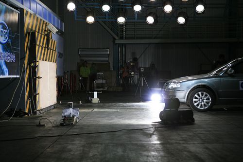 本月17日,帕薩特領馭的首輪碰撞試驗(正面100%重疊剛性壁障碰撞試驗)在中國汽車技術研究中心的碰撞實驗室內如期舉行。試驗開始后,索軌盡頭的一輛都市灰色的帕薩特領馭轎車開始在鋼索的牽引下緩緩加速,在130米的行程中將速度提升至50-51km/h。在車頭接觸到剛性壁障的一剎那爆出一聲巨響,試驗順利結束。  前后四個車門都可以正常打開