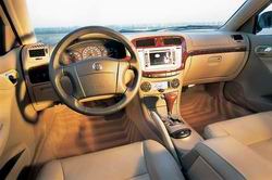 進入駕駛艙,才真正進入了一番新天地。首先,中控臺采用了全新的布局:電動窗按鈕被移到了車門扶手上,操作方便了許多,音響由過去的單DIN位插入式變為專門設計的兩DIN位整體式;其次中控臺的色調由黑色改為了金米色,給人感覺比較親切和高檔;另外,新車型配備了自動恒溫空調,舒適性有所加強,頂級版還能享受帶液晶顯示屏的DVD娛樂系統,已經夠“FB”(腐敗)了。