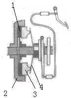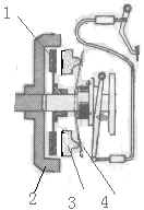 被動部分裝在飛輪與壓盤之間,通過滑動花鍵套在變速器的輸入軸上。在膜片彈簧(4)的彈力作用下,從動盤(1)、壓盤(3)與飛輪(2)夾緊,發動機工作時,飛輪和壓盤通過它們與摩擦片之間的摩擦帶動從動盤一起旋轉,將